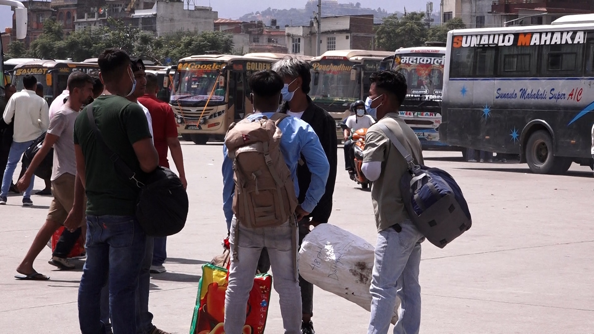 कतिले झोला भिरेका छन्, कतिले पिठ्यूमा बालबच्चा च्यापेका छन्, तिनको मुहारमा छुट्टै आशा र उमंग देखिन्छ गाउँ पुग्ने र आफ्नो परिवारसँग दशैं मनाउने ।