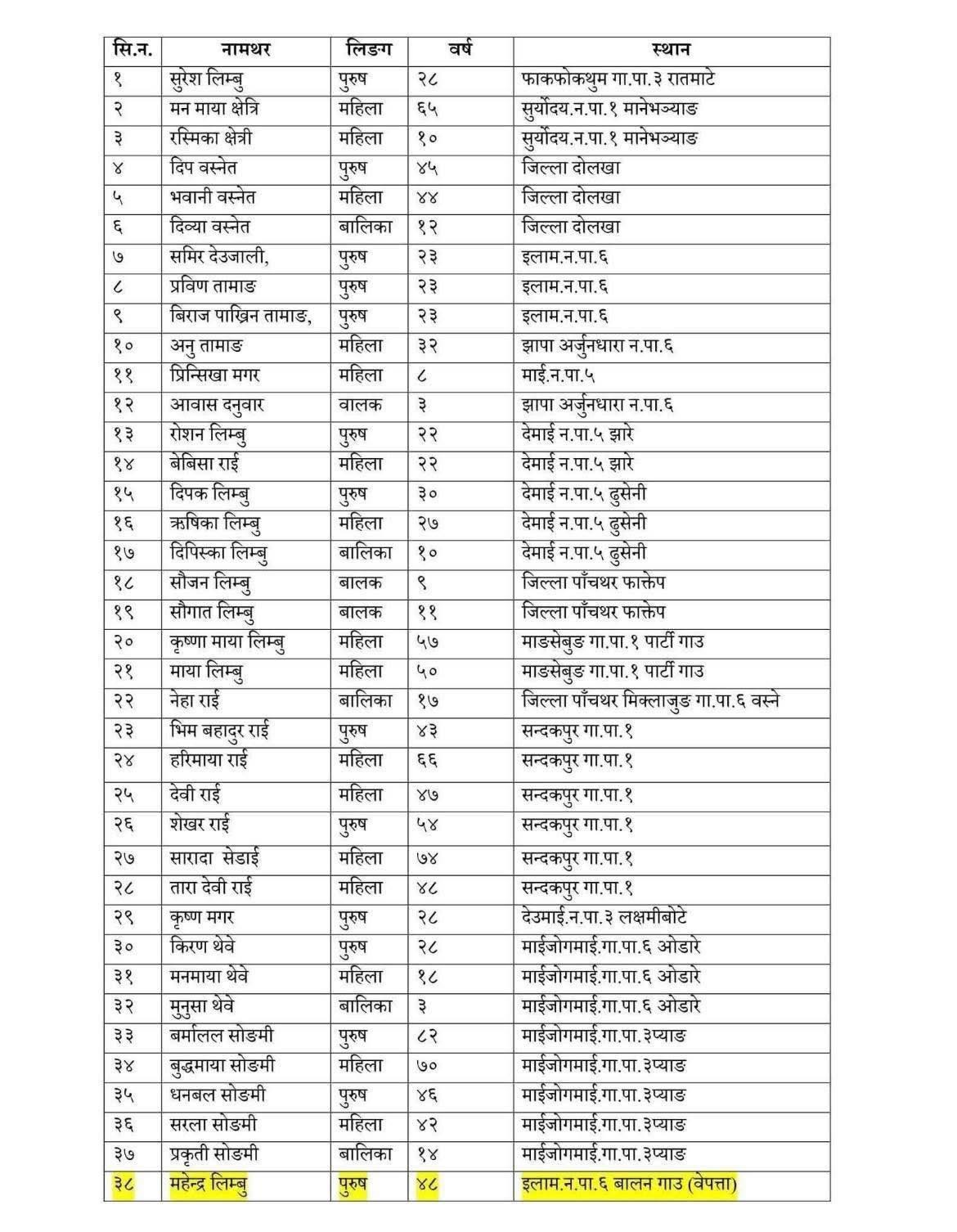 इलामको पहिरोमा ज्यान गुमाउने ३७ जना को-को (नामसहित)