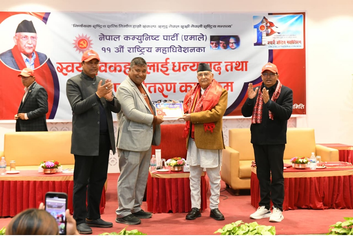 नेकपा (एमाले)को हालै सम्पन्न ११ औँ राष्ट्रिय महाधिवेशनमा खटिएका स्वयंसेवकहरुलाई सम्मान र प्रमाणपत्र वितरण गन आज आयोजित कार्यक्रमलाई सम्बोधन गर्दै पूर्व प्रधानमन्त्री ओलीले आफूहरु चुनावविरोधी नरहे पनि मुलुकमा त्रास र असुरक्षाका बीच निर्वाचनको वातावरण नहुने बताए ।